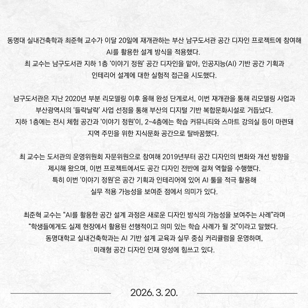 동명대 최준혁 교수, 남구도서관 공간 혁신 참여
